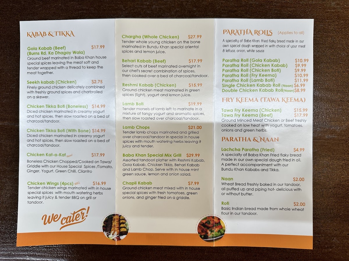 A specialty of Baba Khan Fried Flaky bread made in our own special dough fried in oil. A perfect accompaniment with our kababs and tikka