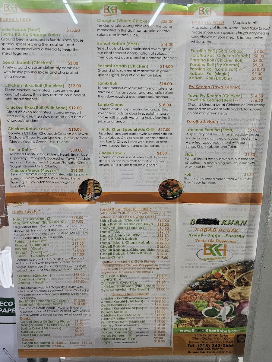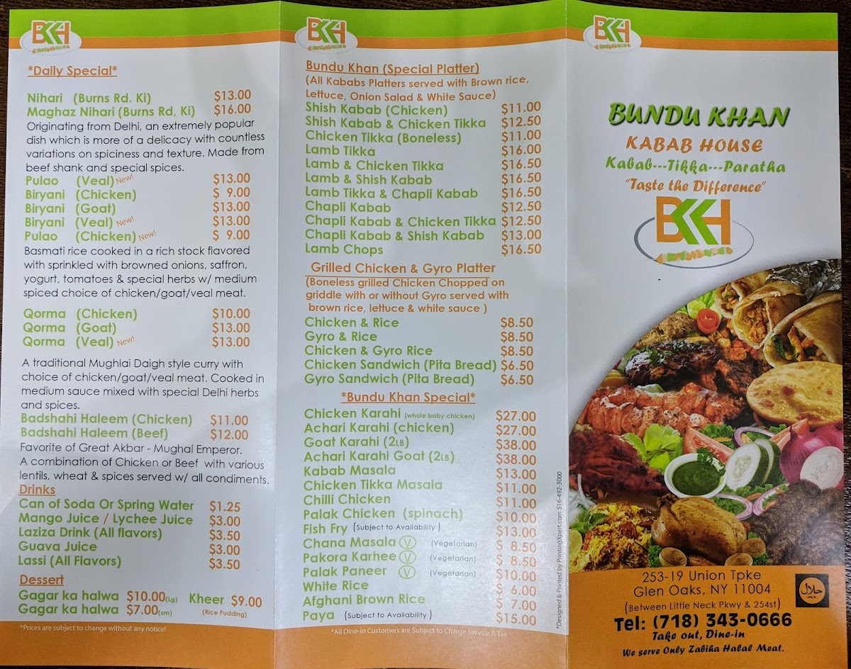A traditional Mughlai Daigh style curry with chicken, goat, or veal meat. Cooked in medium sauce mixed with special Delhi herbs and spices.